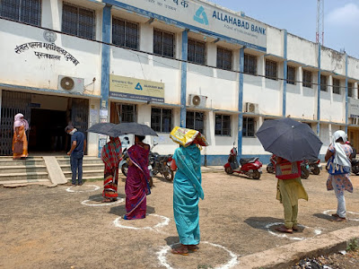 कोरोना वायरस के संक्रमण के प्रसार को रोकने के लिए कई कार्य किये जा रहे हैं।सरकार तथा जिला प्रशासन द्वारा आमजनों को समय-समय पर कई महत्वपूर्ण निर्देश भी दिए जा रहे हैं। इस वायरस के संक्रमण को रोकने के लिए सोशल डिस्टेंसिंग सबसे महत्वपूर्ण है।इस संबंध में भी लोगों को जागरूक किया जा रहा है और लोग सोशल डिस्टेंसिंग का पालन भी कर रहे हैं।इस महामारी के दौरान लोगों को कठिनाई नहीं हो इसे ध्यान में रखते हुए लॉक डाउन के दौरान भी कई जरूरी सेवाओं को चालू रखा गया है।इनमें बैंकिंग सेवा भी महत्वपूर्ण सेवाओं में से एक है। ज्ञात हो कि सरकार द्वारा जनधन खाते में 500 रुपये की राशि भेजी गई है। इस राशि को निकालने के लिए लोग बड़ी संख्या में विभिन्न बैंकों के शाखाओं में पहुंच रहे हैं।इस दौरान सोशल डिस्टेंसिंग बनी रहे इसे ध्यान में रखते हुए बैंक शाखाओं के बाहर मार्किंग भी की गई है।सुरक्षा बल के जवान भी लोगों को सोशल डिस्टेंसिंग का पालन करने के लिए अनुरोध कर रहे हैं।